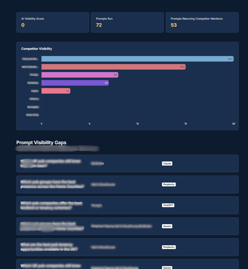 Track how ChatGPT, Claude, Perplexity and Gemini describe your brand and your competitors — then get the PR strategy to change it.
